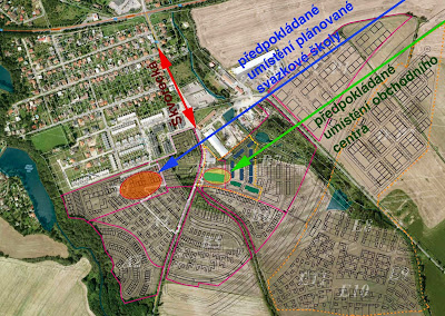Konkrétně kam zmizela původně navrhovaná příjemná příměstská architektura – náměstíčko, obchodní ulice v návaznosti na křižovatku „Škvorecké“ s budoucí komunikací „Dlouhá“. Teď z toho zůstaly pouze obytné domy (s parterem k pronajmutí) a obchodní dům.